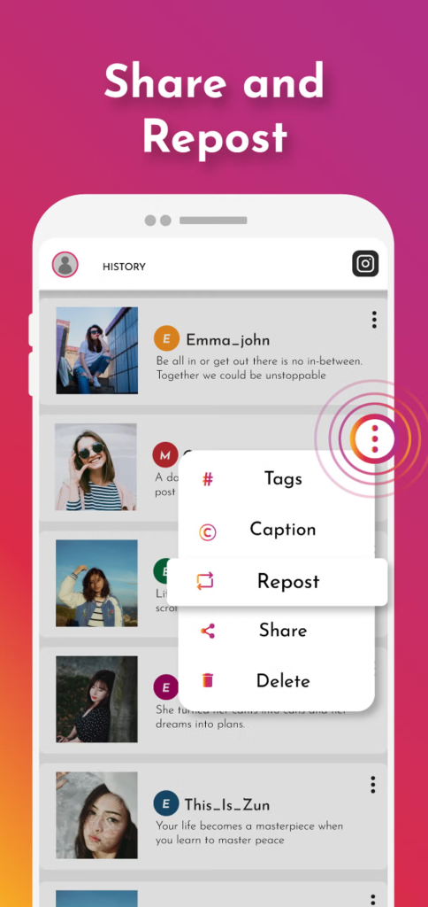 It allows downloading Instagram content in a blink of a second and without any complications: